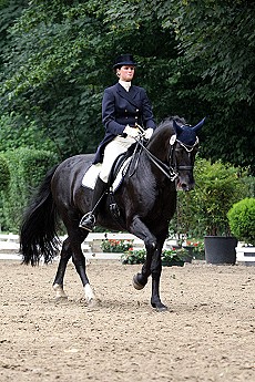 reitet inzwischen erfolgreich Dressur bis zur schweren Klasse auf Pferden, die sie selbst bis zu diesem Ausbildungstand gebracht hat.